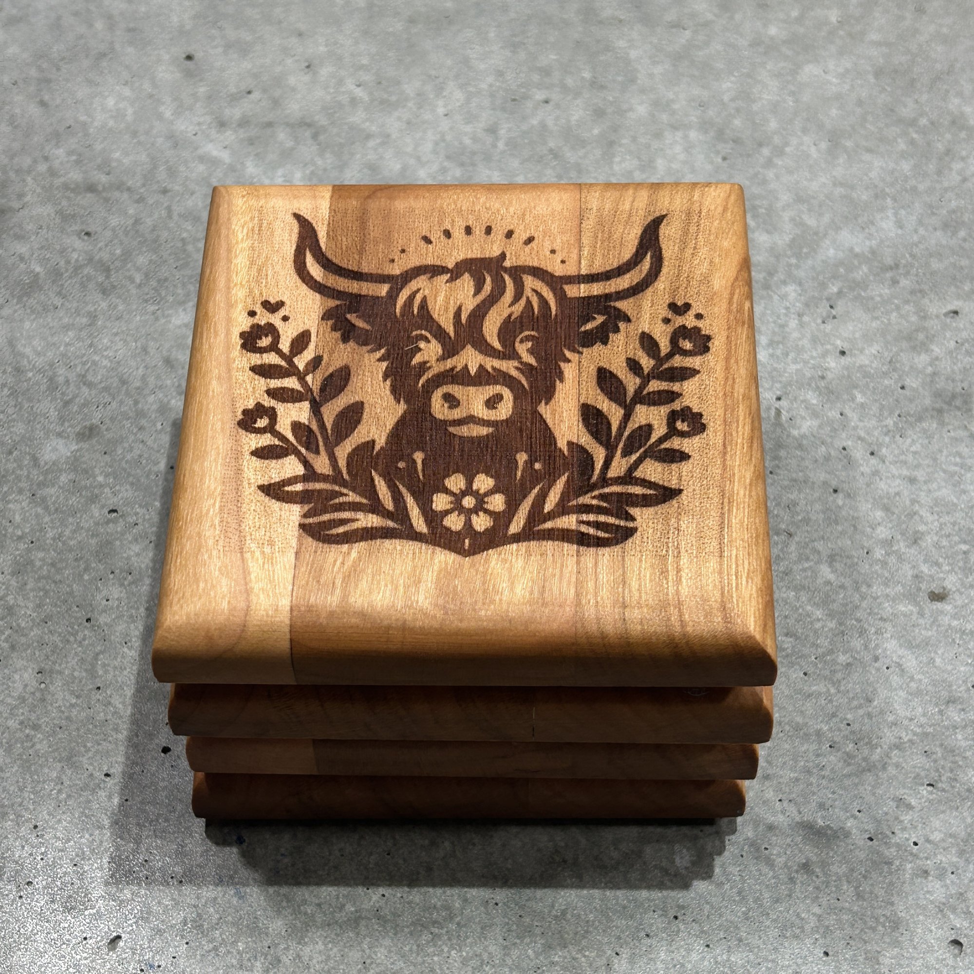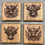 Hardwood Coaster Set Highland Cow