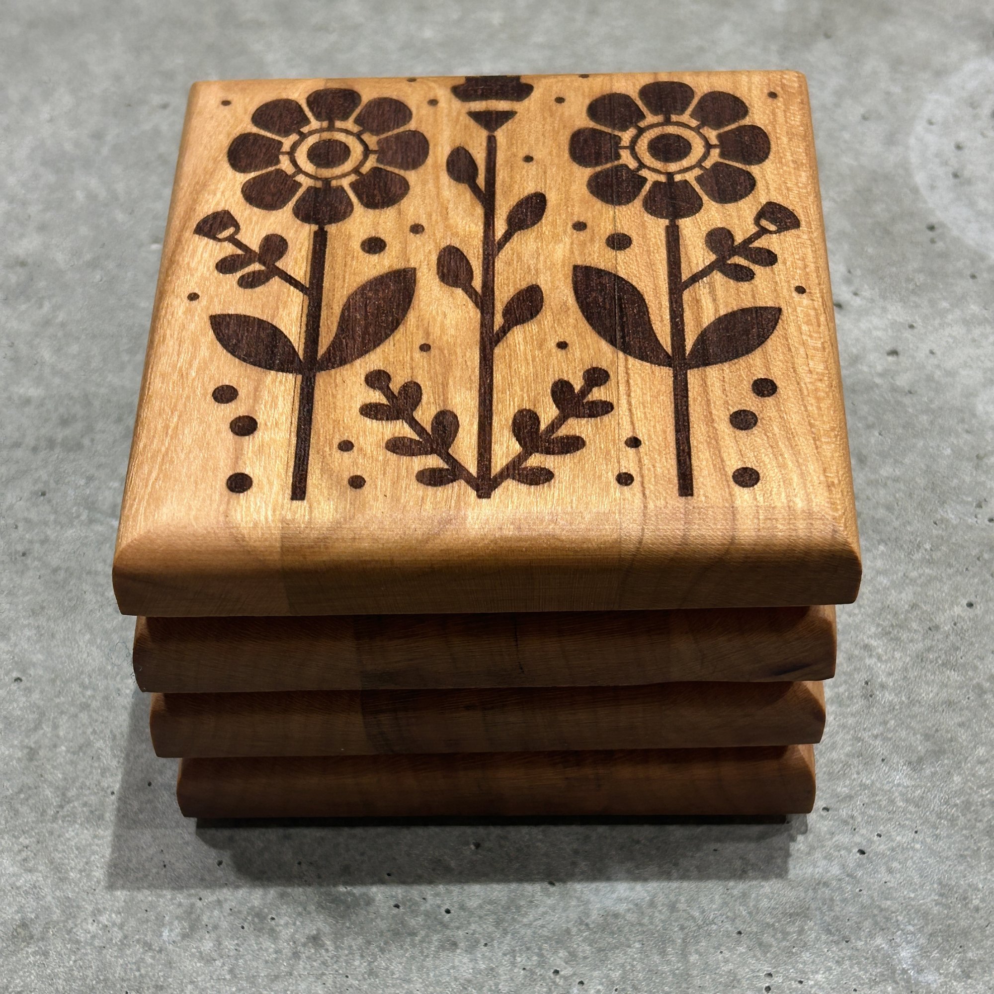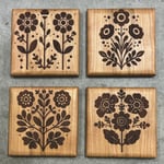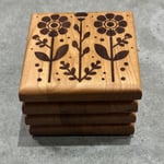 Hardwood Coaster Set Retro Flower 2